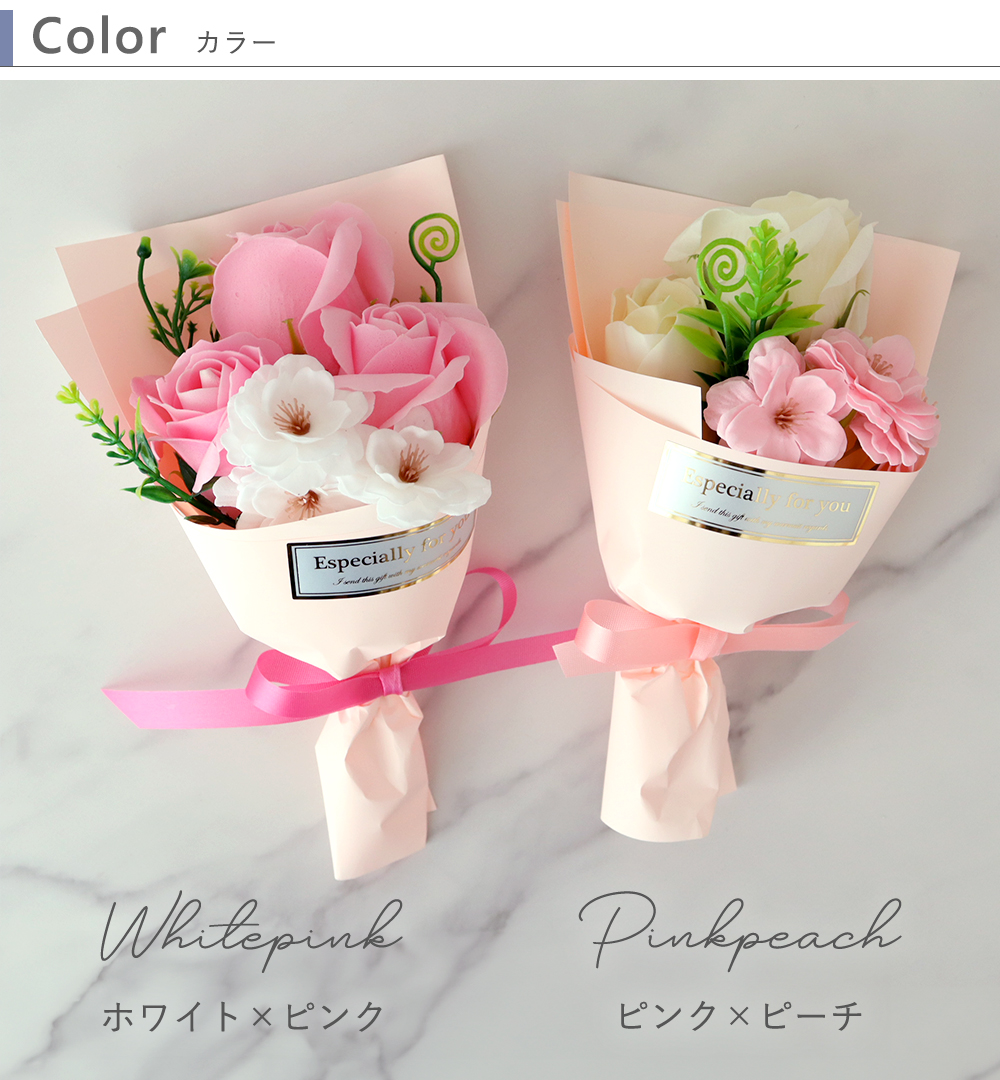 ソープフラワーは石鹸でできたお花なので、枯れてしまう心配がありません。